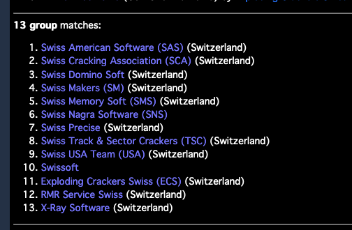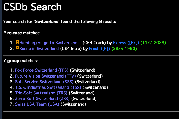 CSDb Search for cracker groups from Switzerland